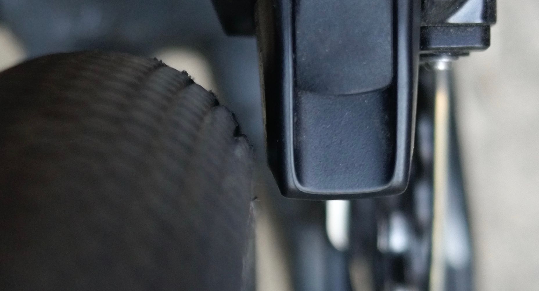 Why is it troubling? Neither I, nor my local bike shop, could ever get the front shifter to behave: every so often when changing sur la plaque it would through the chain off. Combined with how the battery sticks out from the front shifter, it greatly restricts the tyre size. The 42c tyres - big, cushiony balloons to ride on - rub on the battery casing by about 2-3mm (possible less).